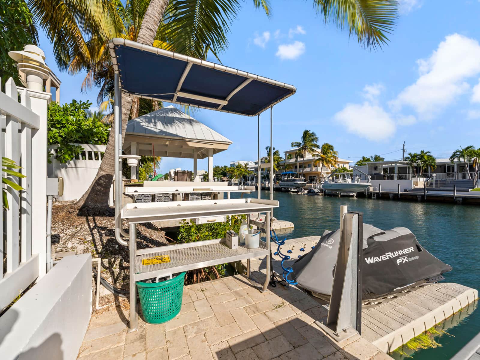 Enjoy direct canal access with powered dockage for boats up to 45 feet, including shore power at the dock, a freshwater rinse, and a dedicated fish cleaning station. Dock lighting supports night arrivals, while secure cleats, protective fenders, and a swim ladder round out a setup designed for serious time on the Florida Keys waterways.